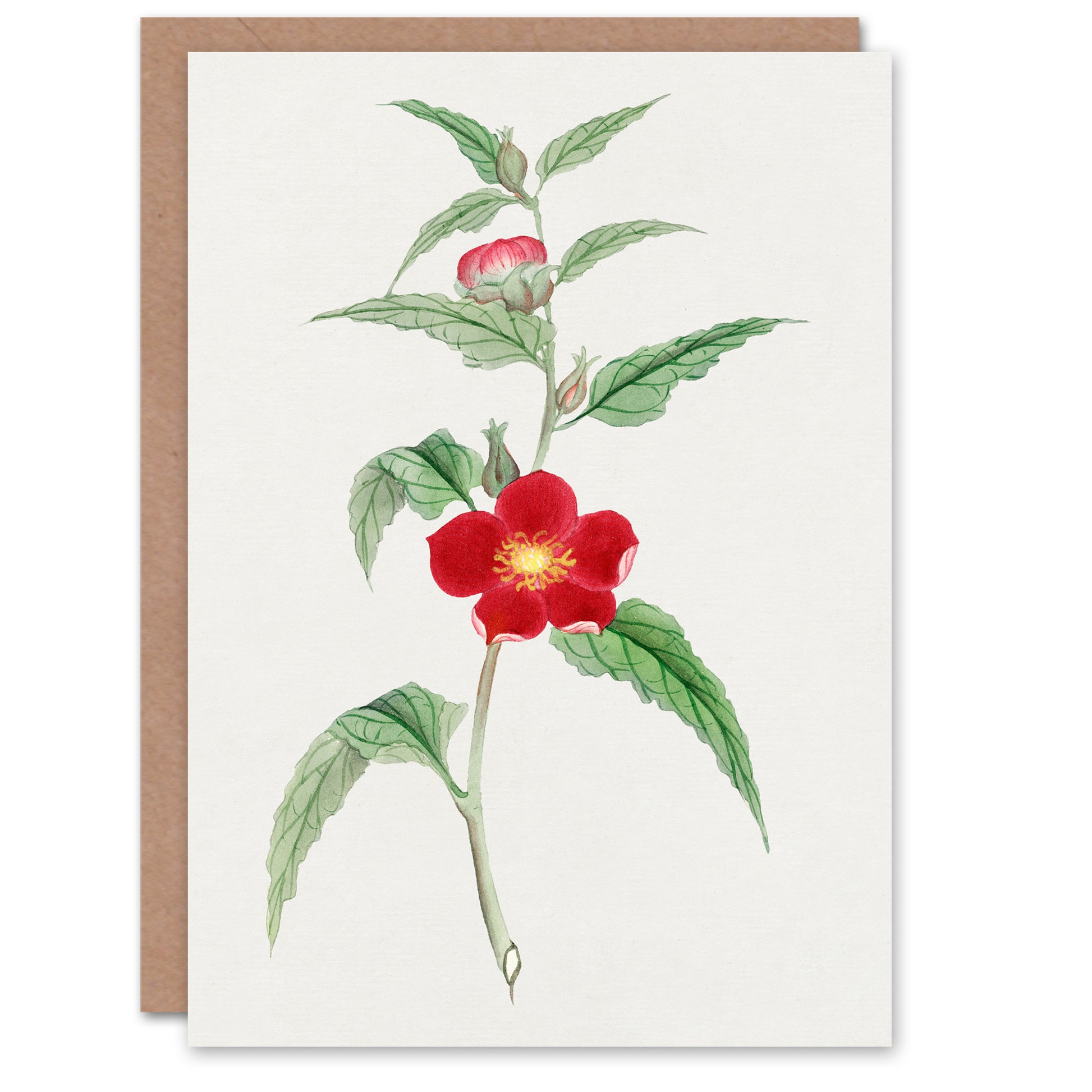 Vintage Japanese Botanical Pomegranate Flower Greetings Card