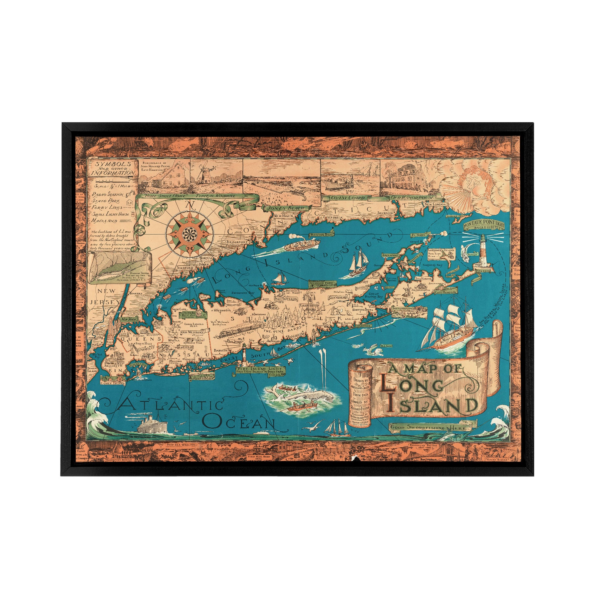 Vintage Map of Long Island New York Black Framed Canvas Wall Art Print