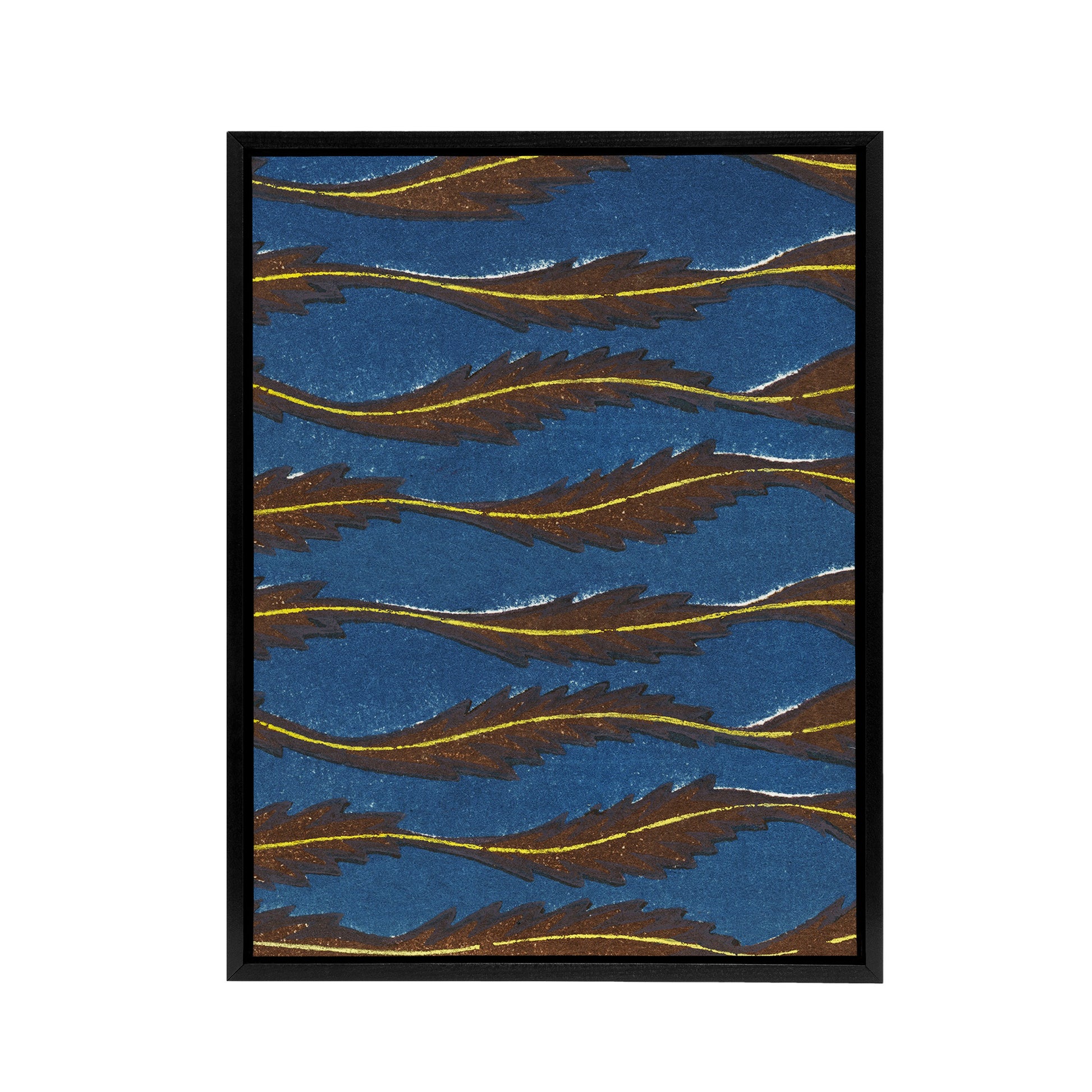 Vintage Pattern Feathers on Blue Framed Canvas Wall Art Print Korin
