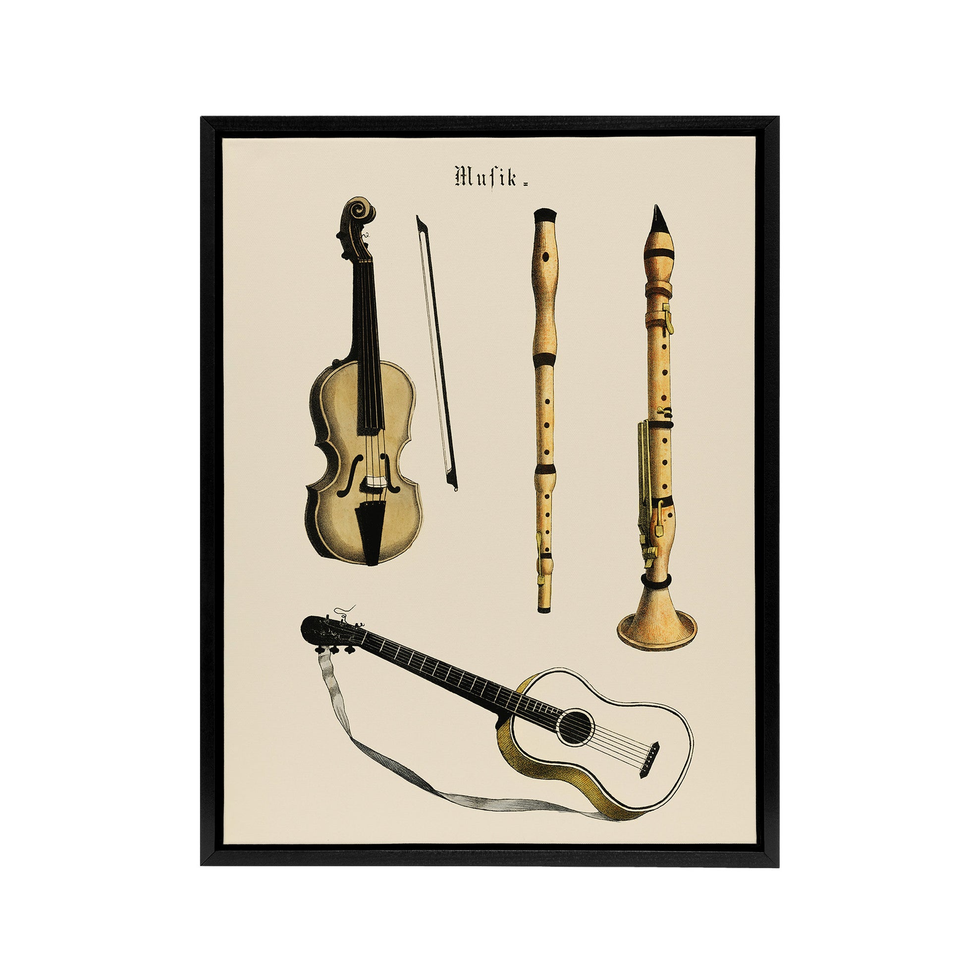Violin Guitar and Flutes Musical Vintage Black Framed Canvas Wall Art