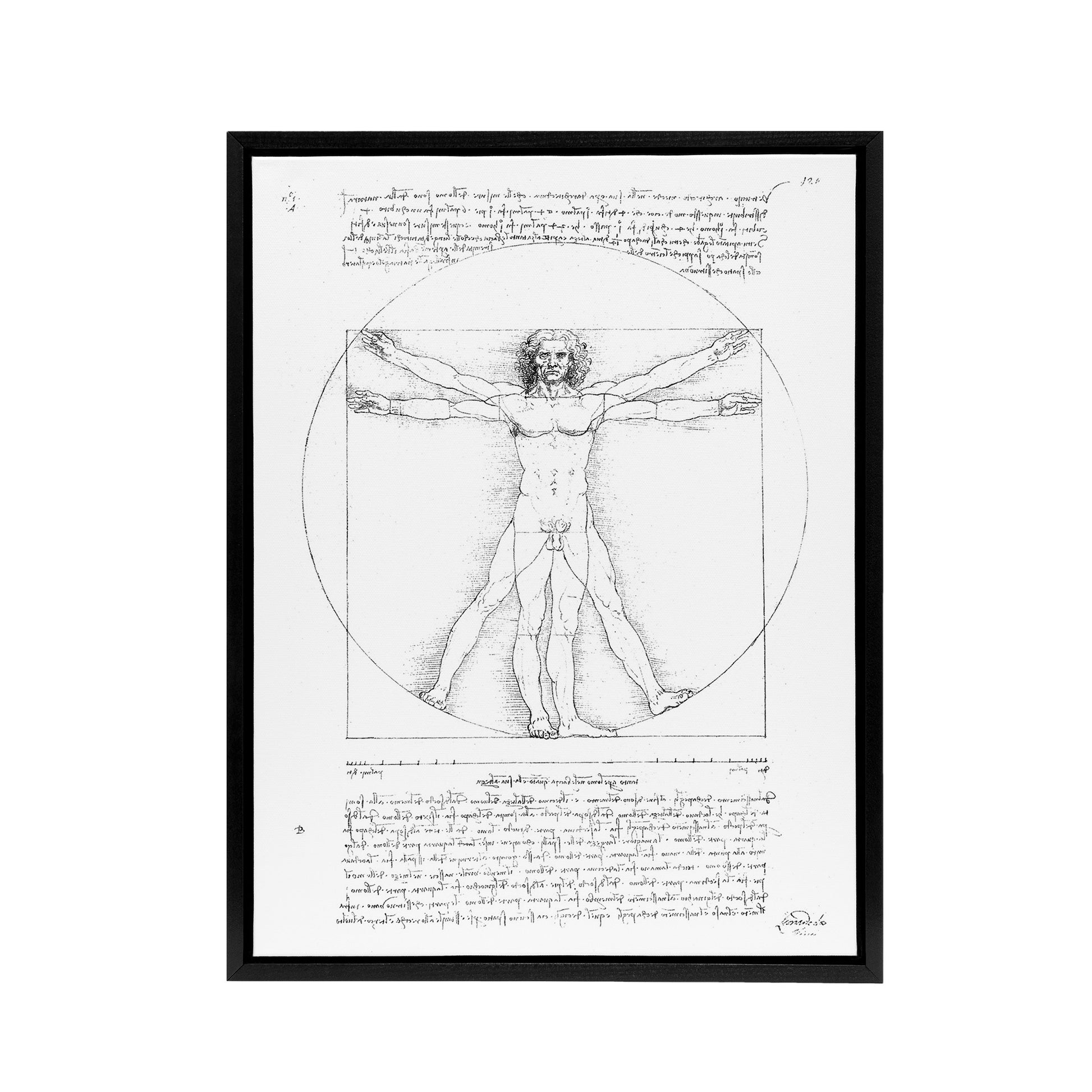 Vitruvian Man Black and White da Vinci Vintage Framed Canvas Wall Art