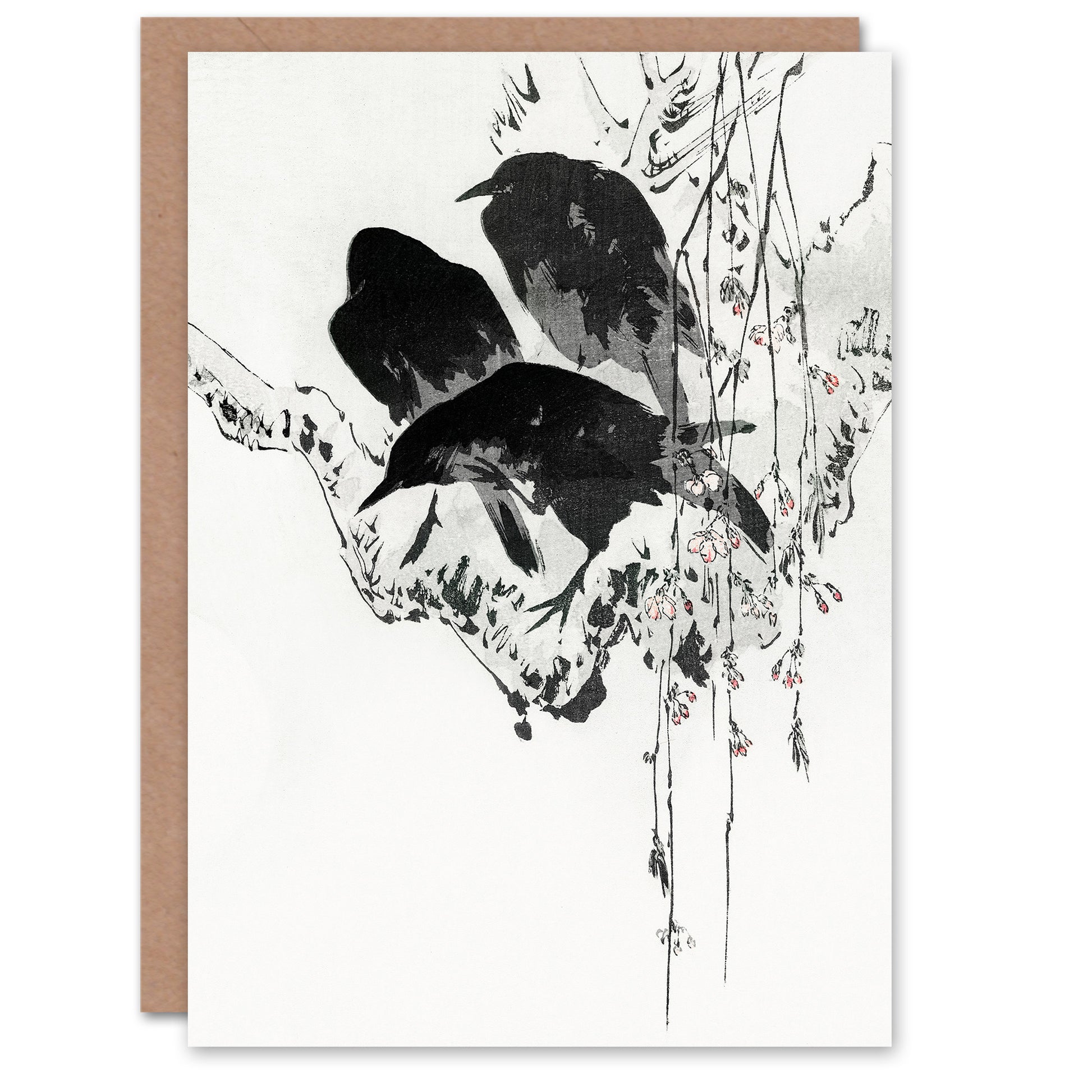 Watanabe Seitei Japanese Crows Vintage Japanese Greetings Card