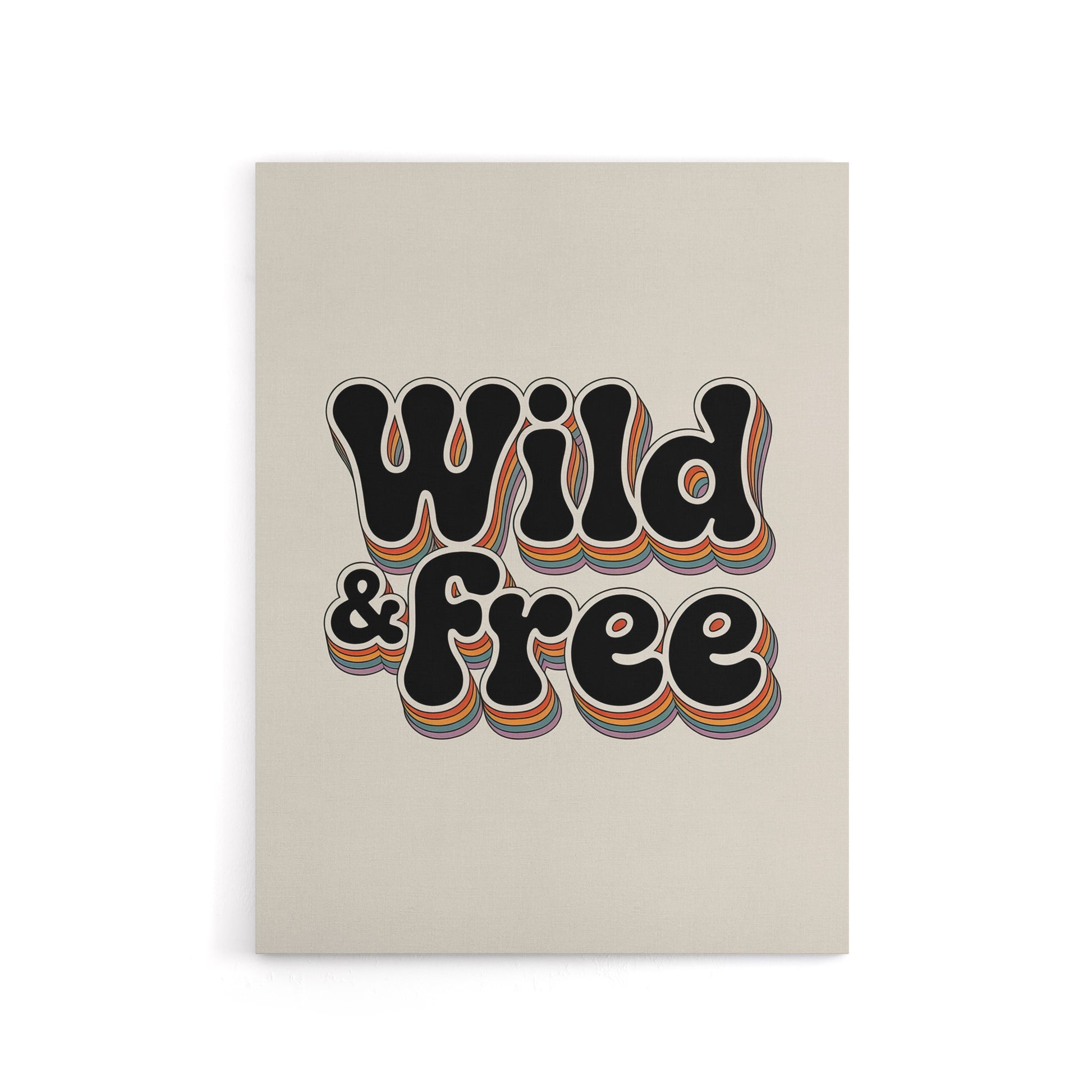 Wild And Free Retro Rainbow Font Typography Canvas Wall Art Print