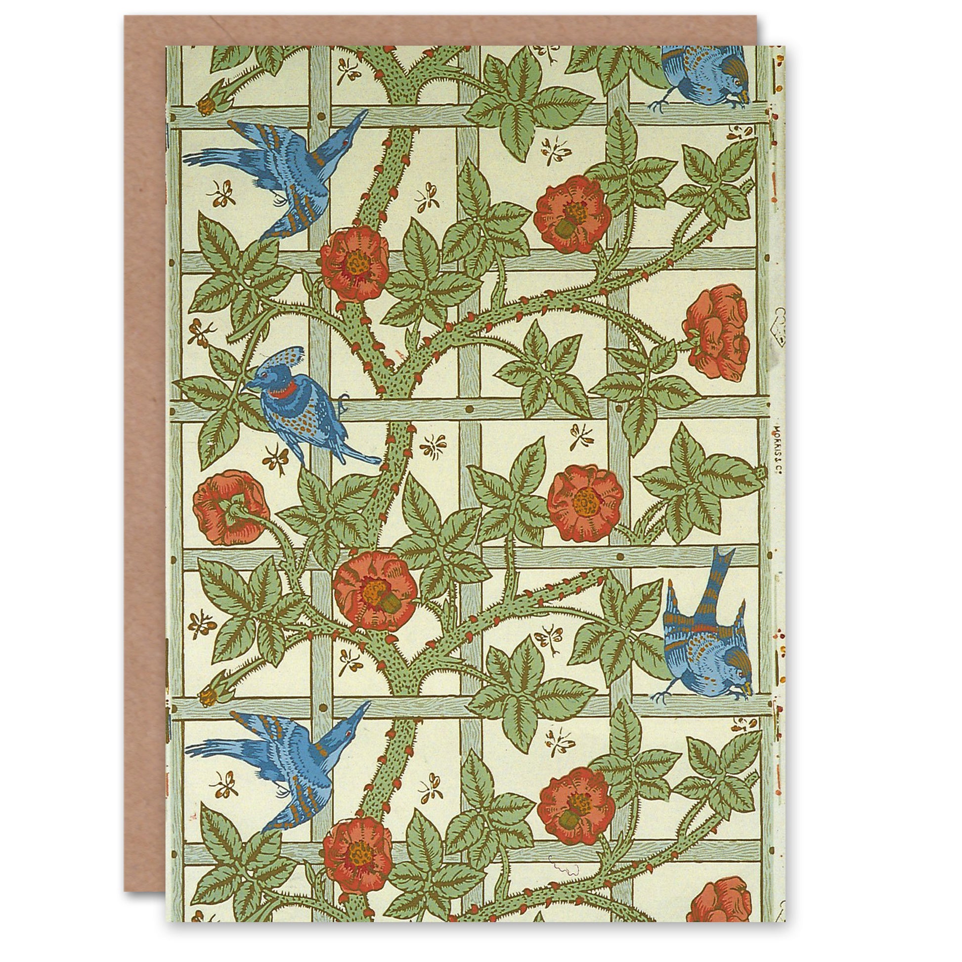 William Morris Trellis Rose Bush and Birds Greetings Card