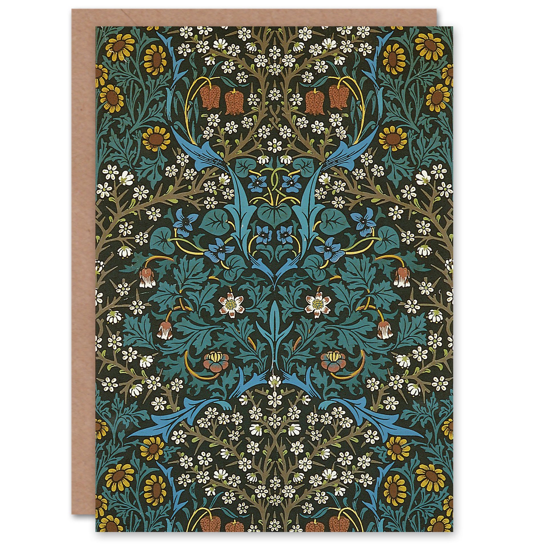 William Morris Tulip and Daisy Flowers Pattern Greetings Card