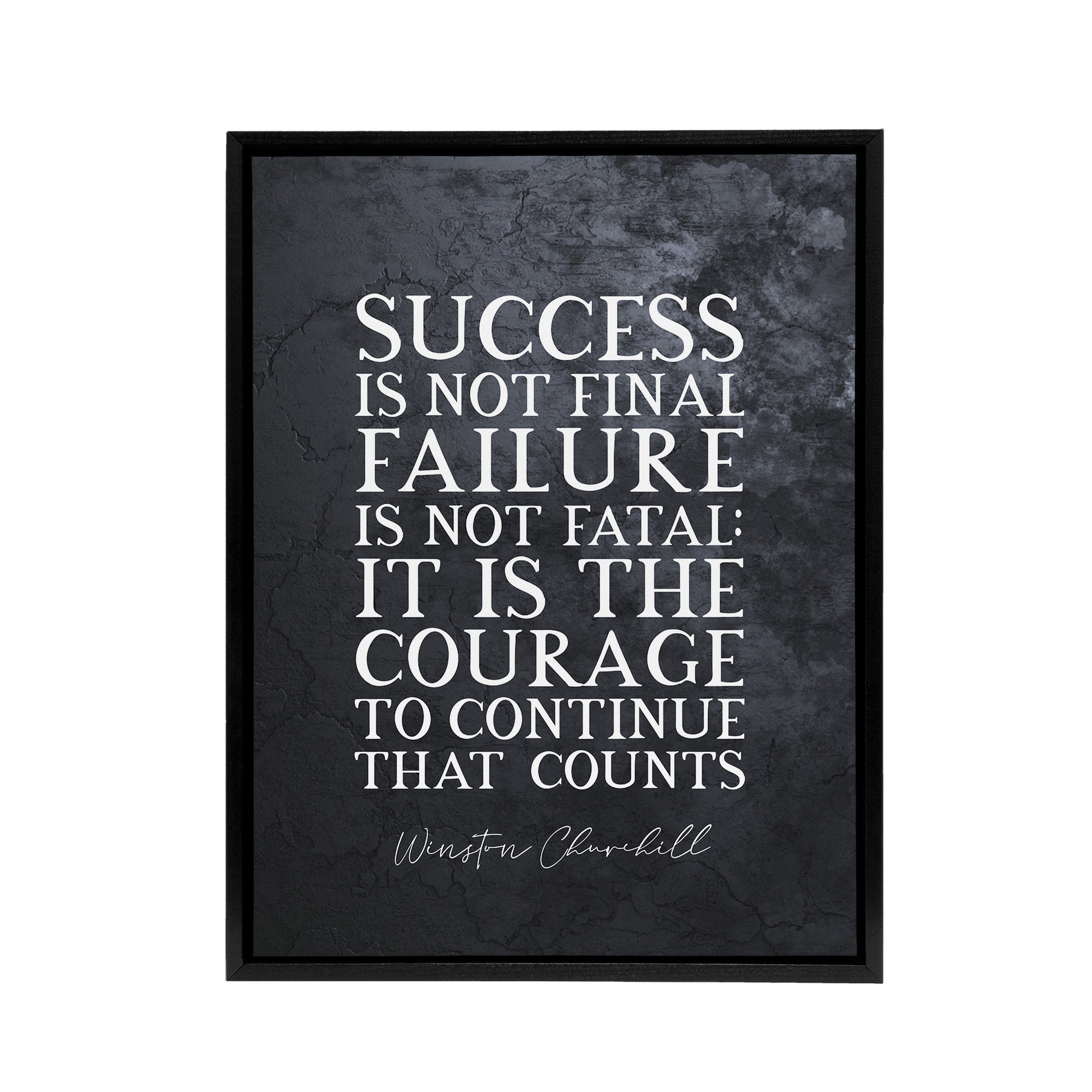 “Slate Quote Winston Churchill Success” comes to life as a Framed Canvas print crafted for ready-to-hang display. This Framed Canvas print elevates your home with artful detail and vibrant colour. Versatile and ready to hang, it suits living rooms, bedrooms, offices, or creative studios. A stylish choice that adds personality and visual interest to your walls. Historic leadership quote print, bold decor for hallways or professional spaces