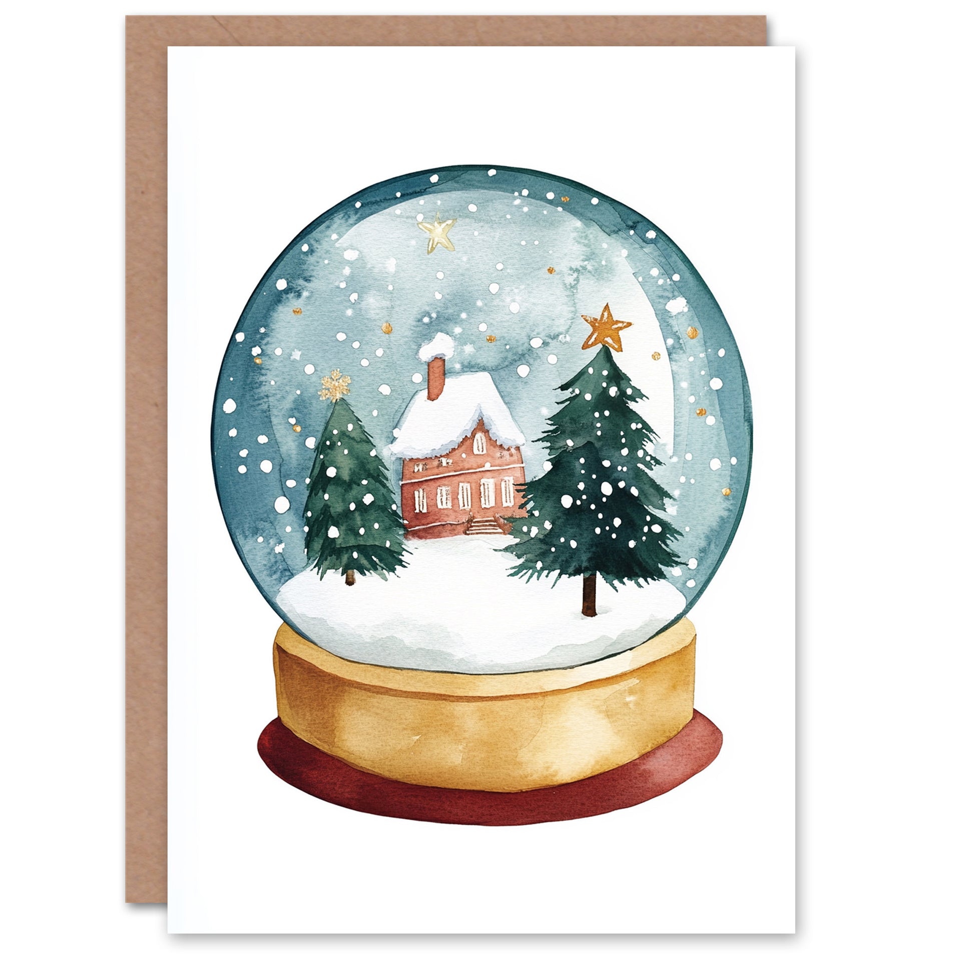Winter Cabin Trees Snow Globe Festive Art Christmas Card