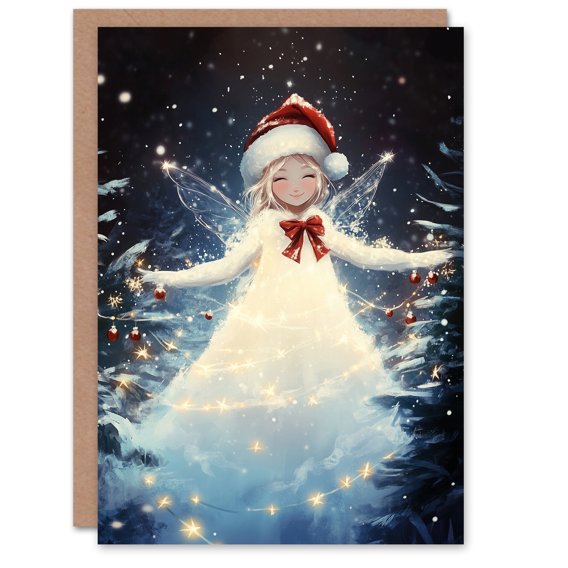 Winter Pixie Fairy Santa Hat String Lights Anime Christmas Card