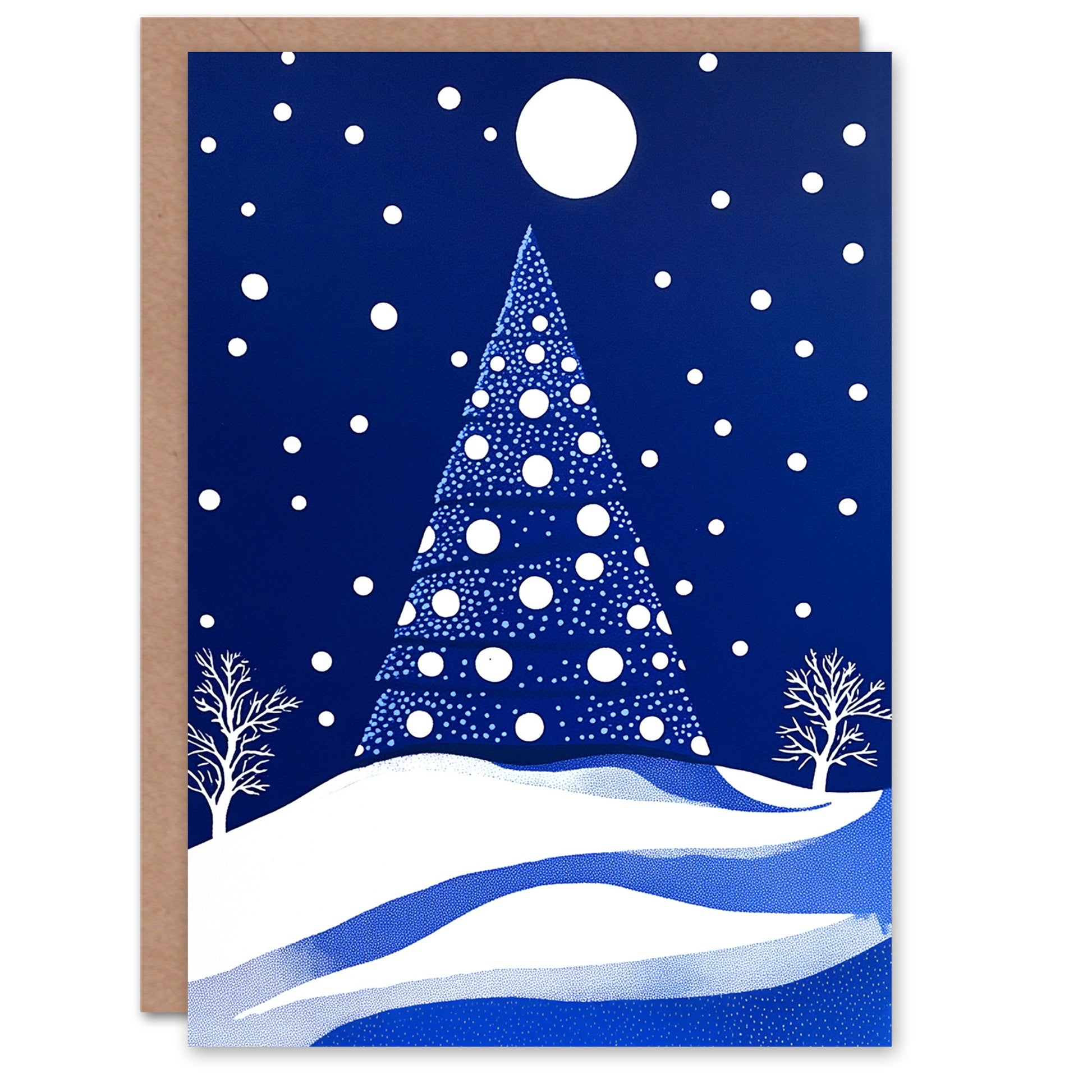 Winter Wonderland Tree Snow Full Moon Night Xmas Christmas Card