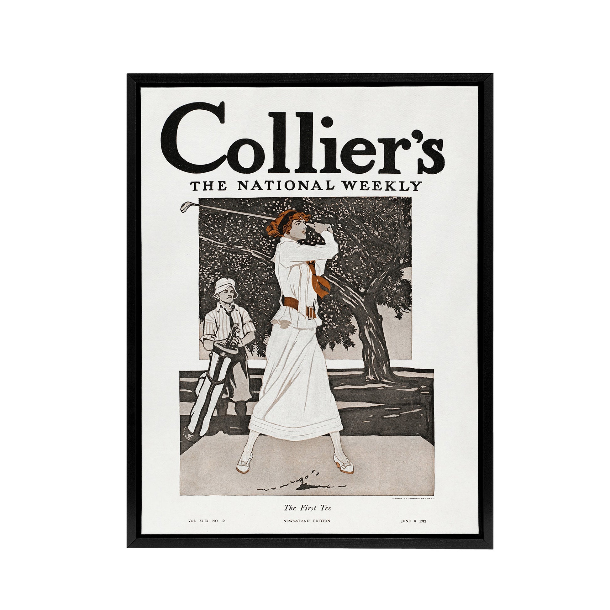 Woman Golfer First Tee Vintage Magazine Cover Canvas Wall Art Print - This classic vintage print shows a woman golfer poised on the tee, representing confidence and grace. Perfect as artwork, wall print, or home decor, it adds nostalgic energy and charm.