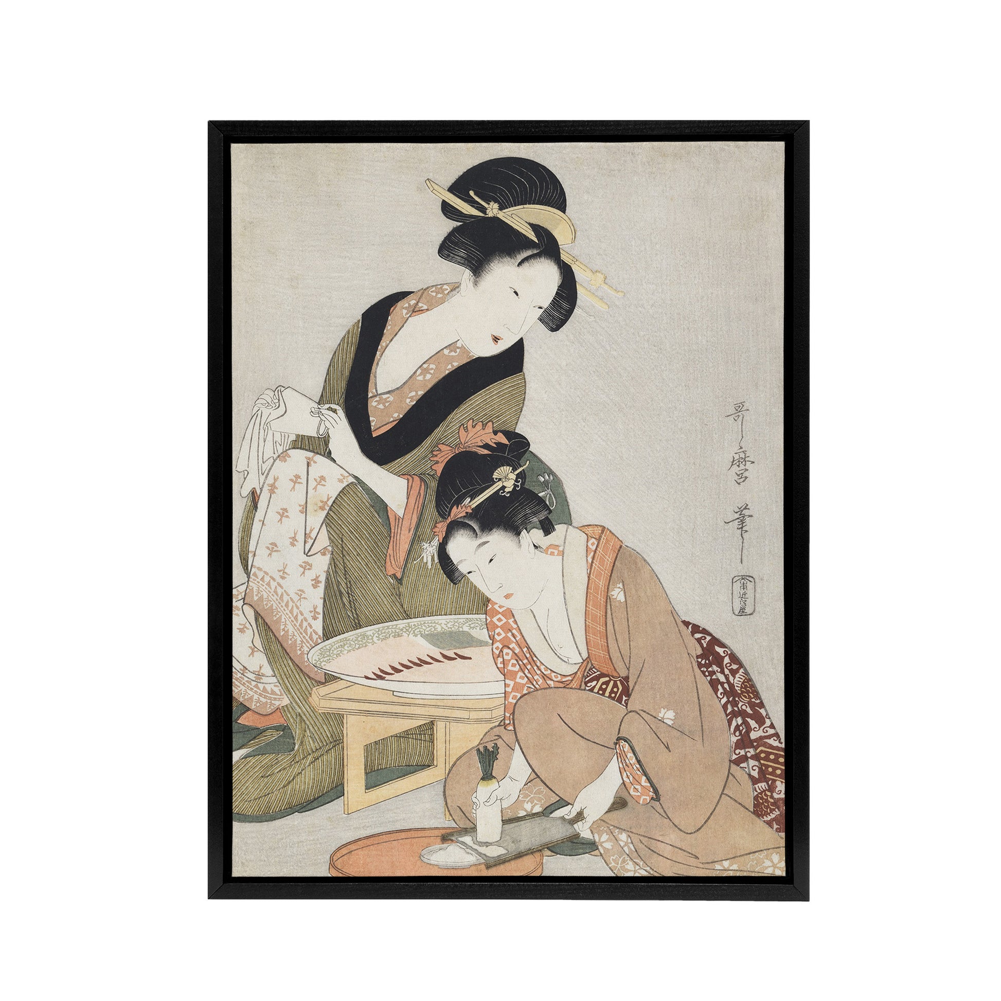 Women Preparing Sashimi Framed Canvas Wall Art Print Utamaro Kitagawa
