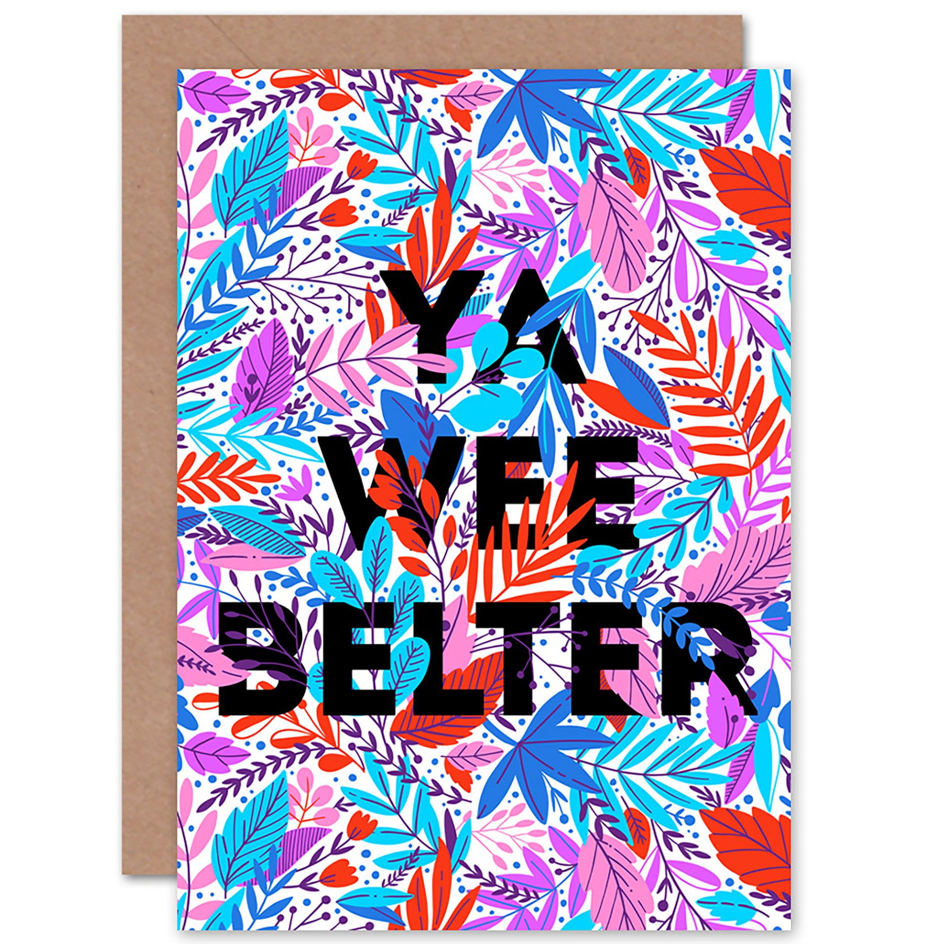 Woven Flower Typography Scotland Wee Belter Scottish Card