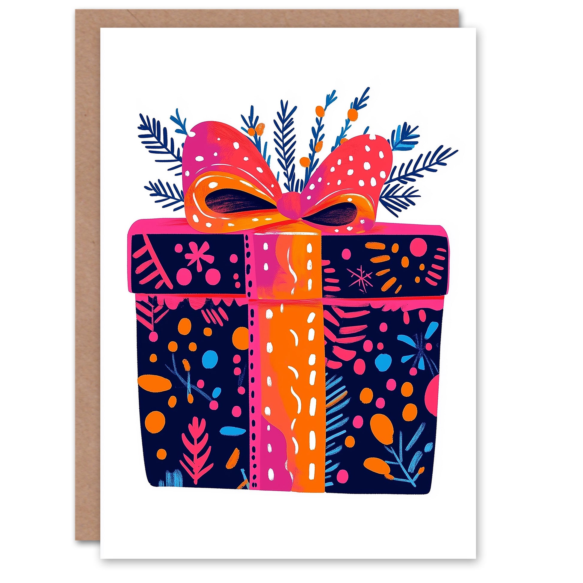 Wrapped Present Vibrant Abstract Floral Pattern Christmas Card