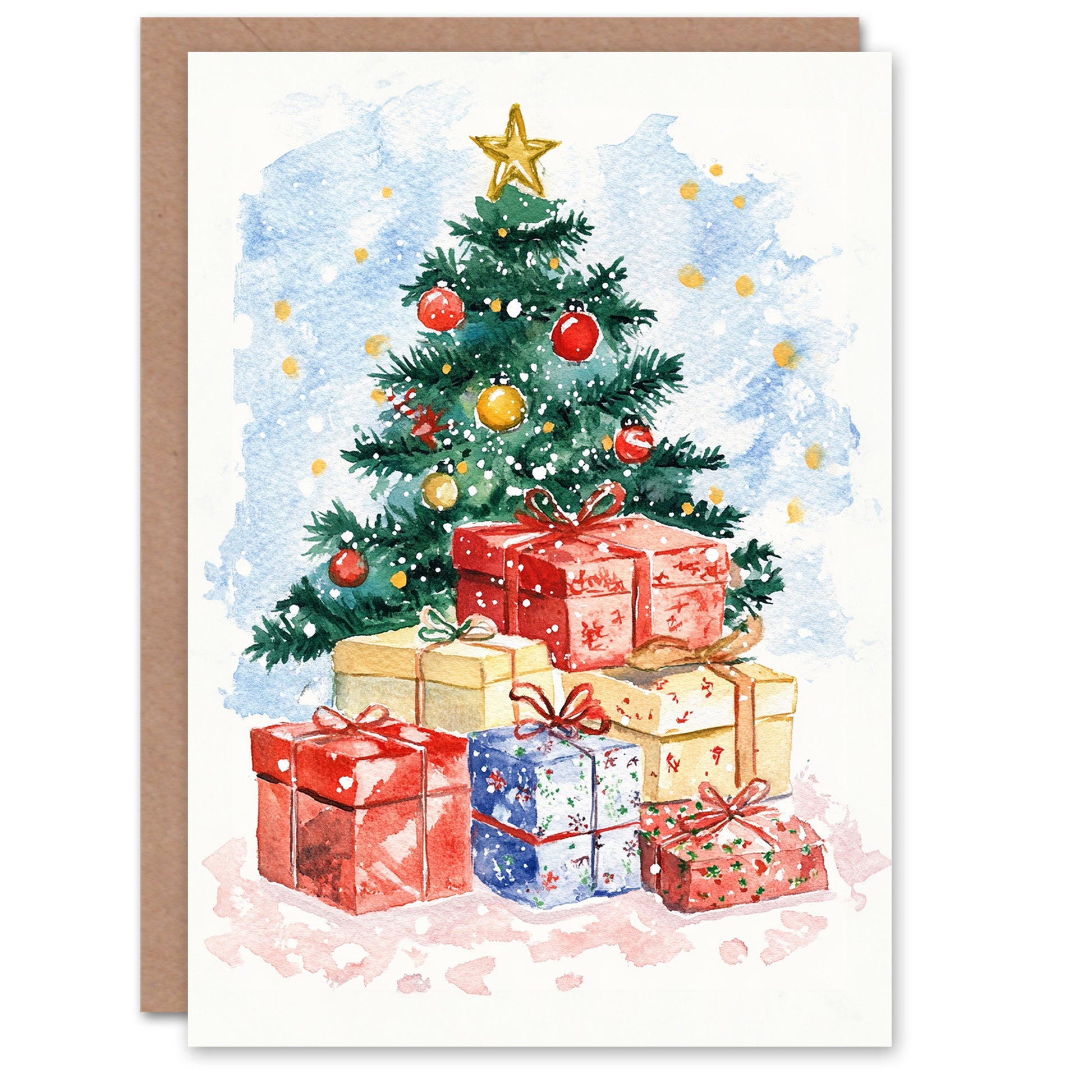 Wrapped Presents Decorated Under Tree Festive Christmas Card