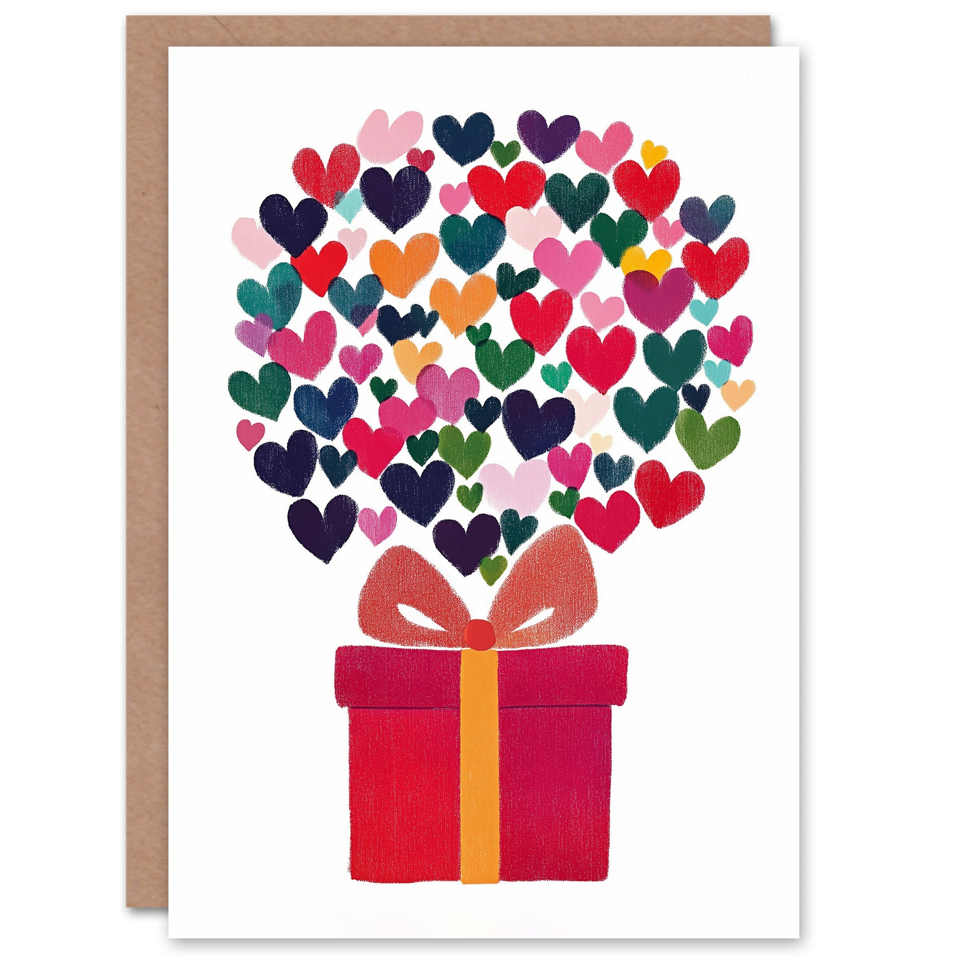 Wrapped Red Present Love Hearts Bright Modern Christmas Card