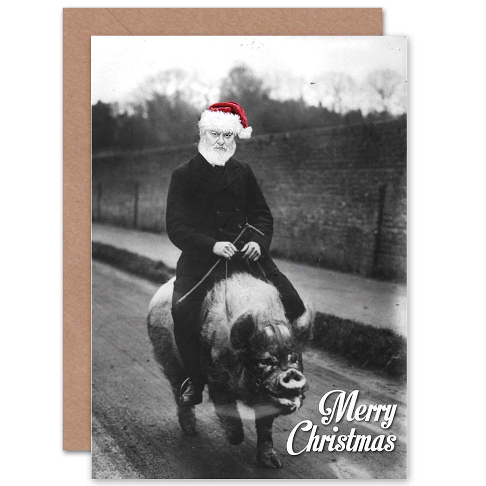 Xmas Bizarre Santa on Pig Funny Merry Christmas Card