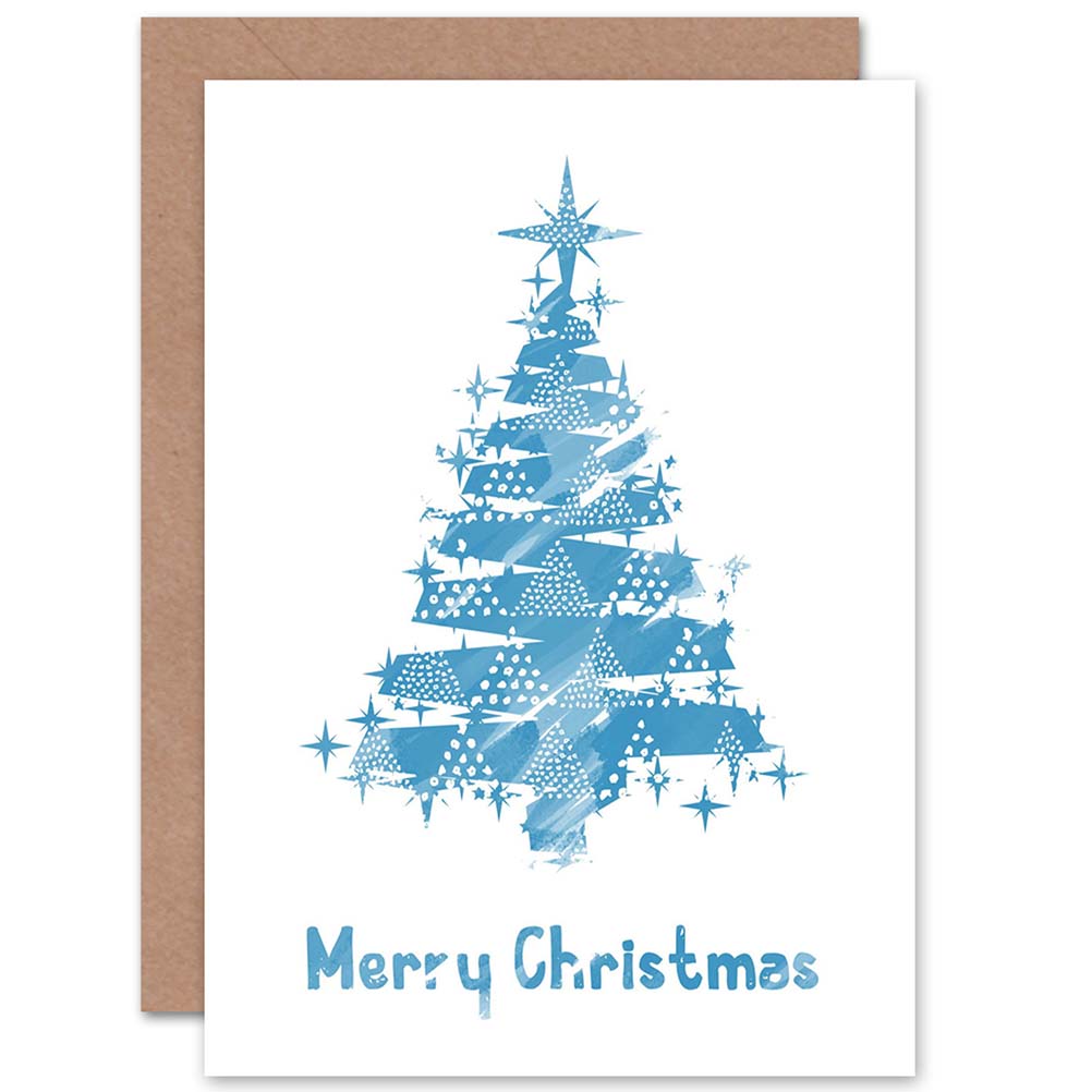 Xmas Tree Bright Modern Blue Christmas Card