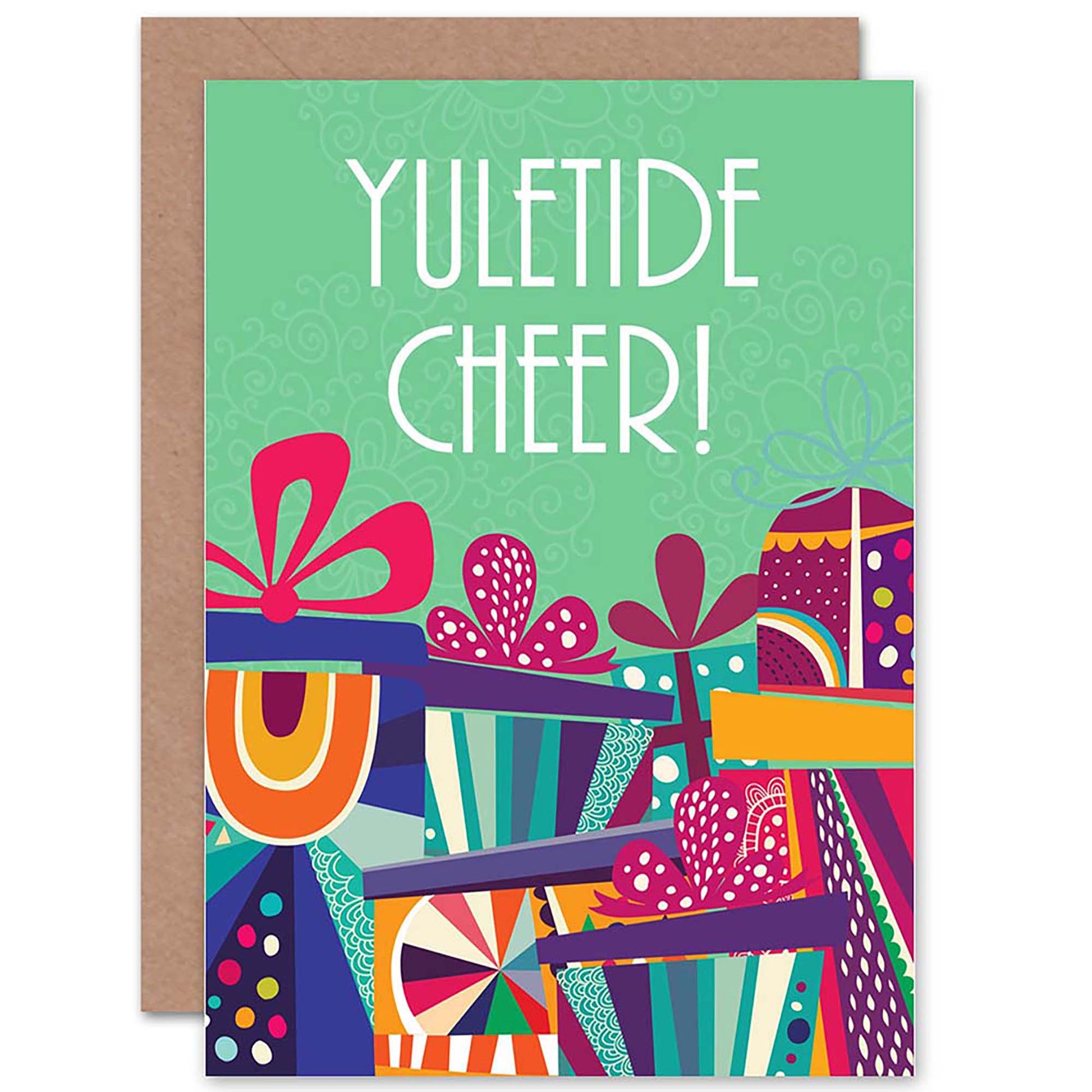 Yuletide Cheer Gift Stack Colourful Christmas Card